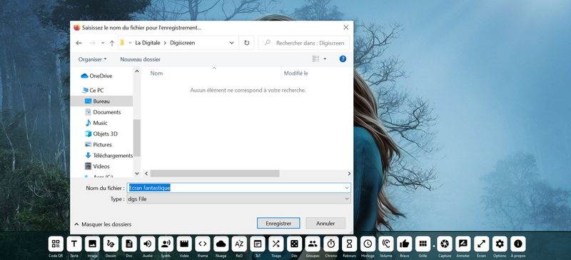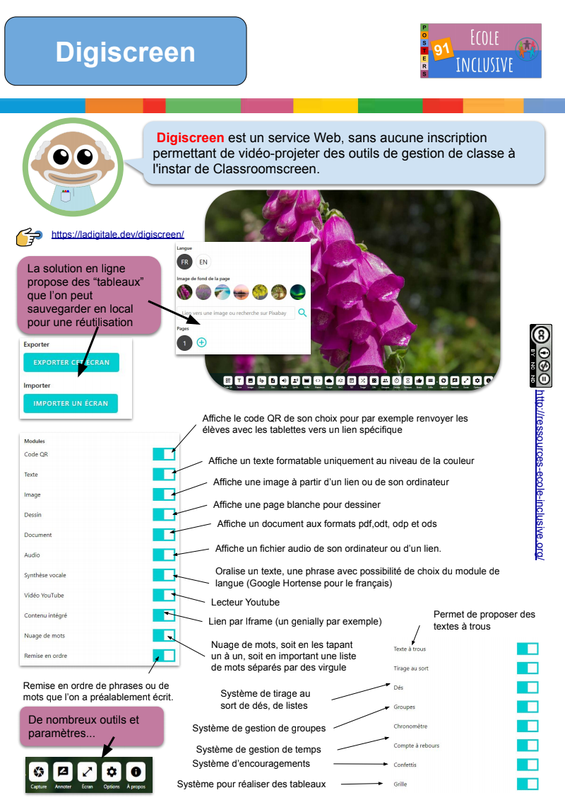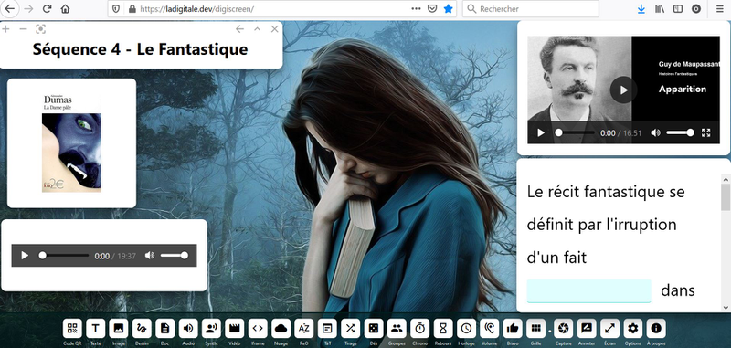 L'enseignant peut préparer au préalable son Digiscreen, avec les outils dont il aura besoin pour sa séance, puis l'exporter et le réutiliser.