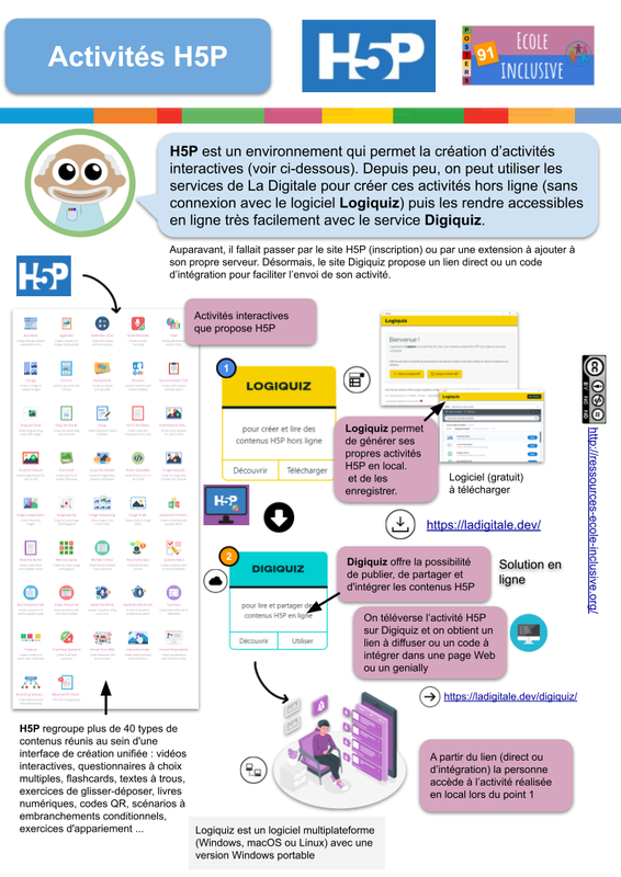La Digitale fournit deux solutions pour travailler les activités interactives de H5P. Logiquiz permet très simplement de créer en local les activités (sans aucune connexion, ce qui n’était pas possible avant). On sauvegarde ensuite l’activité au format H5P sur son ordinateur. Digiquiz est le second outil ; il permet après téléversement du fichier H5P d’obtenir … Continuer la lecture de Poster : réaliser des activités H5P avec les outils de La Digitale →